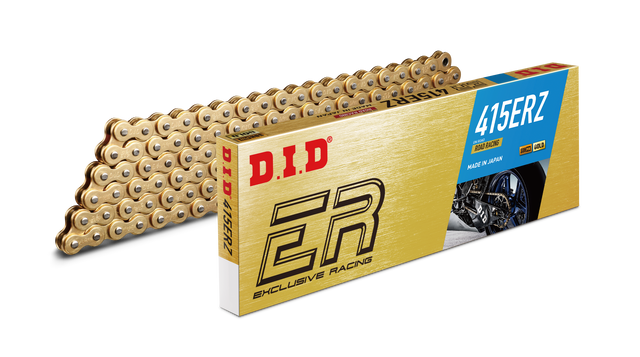 D.I.D's 415ERZ, non-sealed chain is part of our Exclusive Racing Series designed for Mini MX and Road Racing bikes alike! Its SDH (super die hard) pin treatment takes it a notch above the competition. Get the upper hand with the 415ERZ chain.